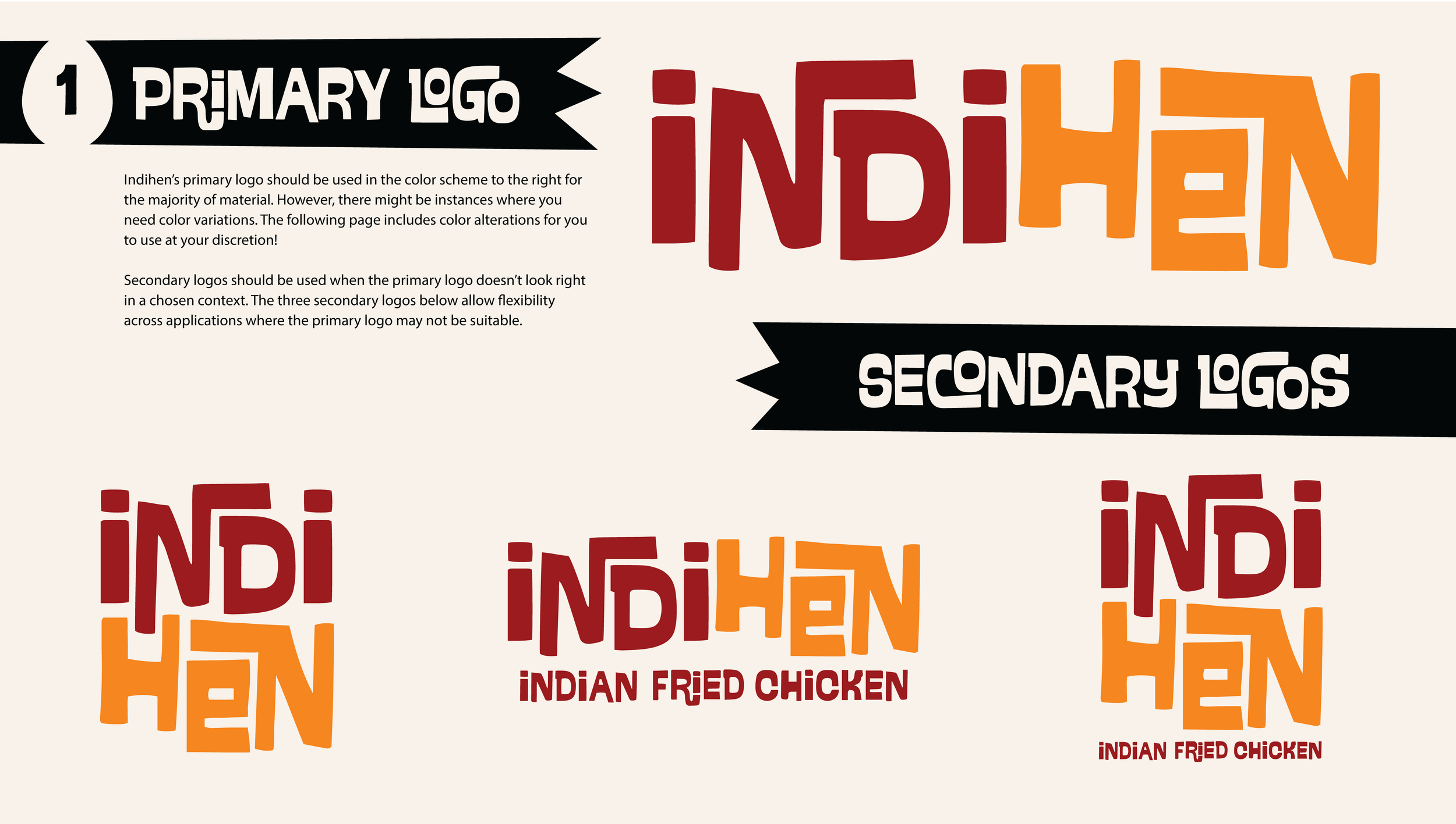 What do you get when you take chicken and give it some Indian flair? Indihen! Boston’s first Indian Fried Chicken establishment.The below is the identity deck I created for the launch of the brand.